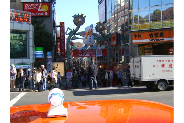 Entrance to Takeshita street in Shibuya. Note the style of the guy across the street. He'd be comfortable here.