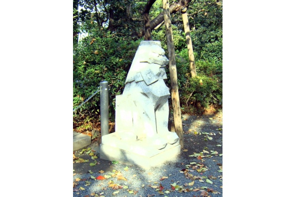 This Temple Dog was the only one done in this style that I saw in Tokyo. Note all the sharp angles and very modern appearence. I think this shrine was rebuilt in 1969.