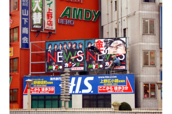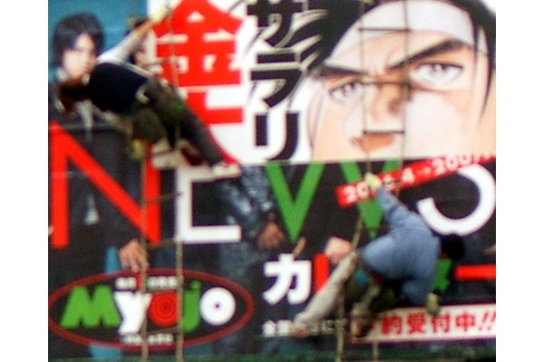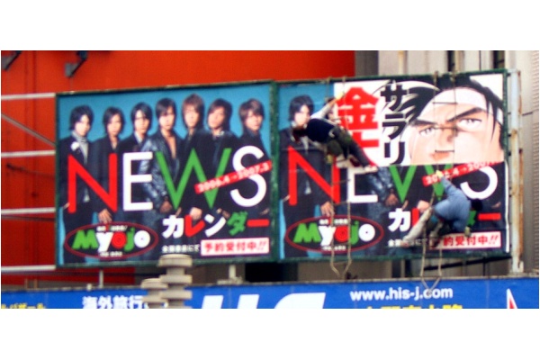 This is how they change advertising billboards in Ueno. It took maybe 1/2 hour to do the two things. Both guys had safety harneses.